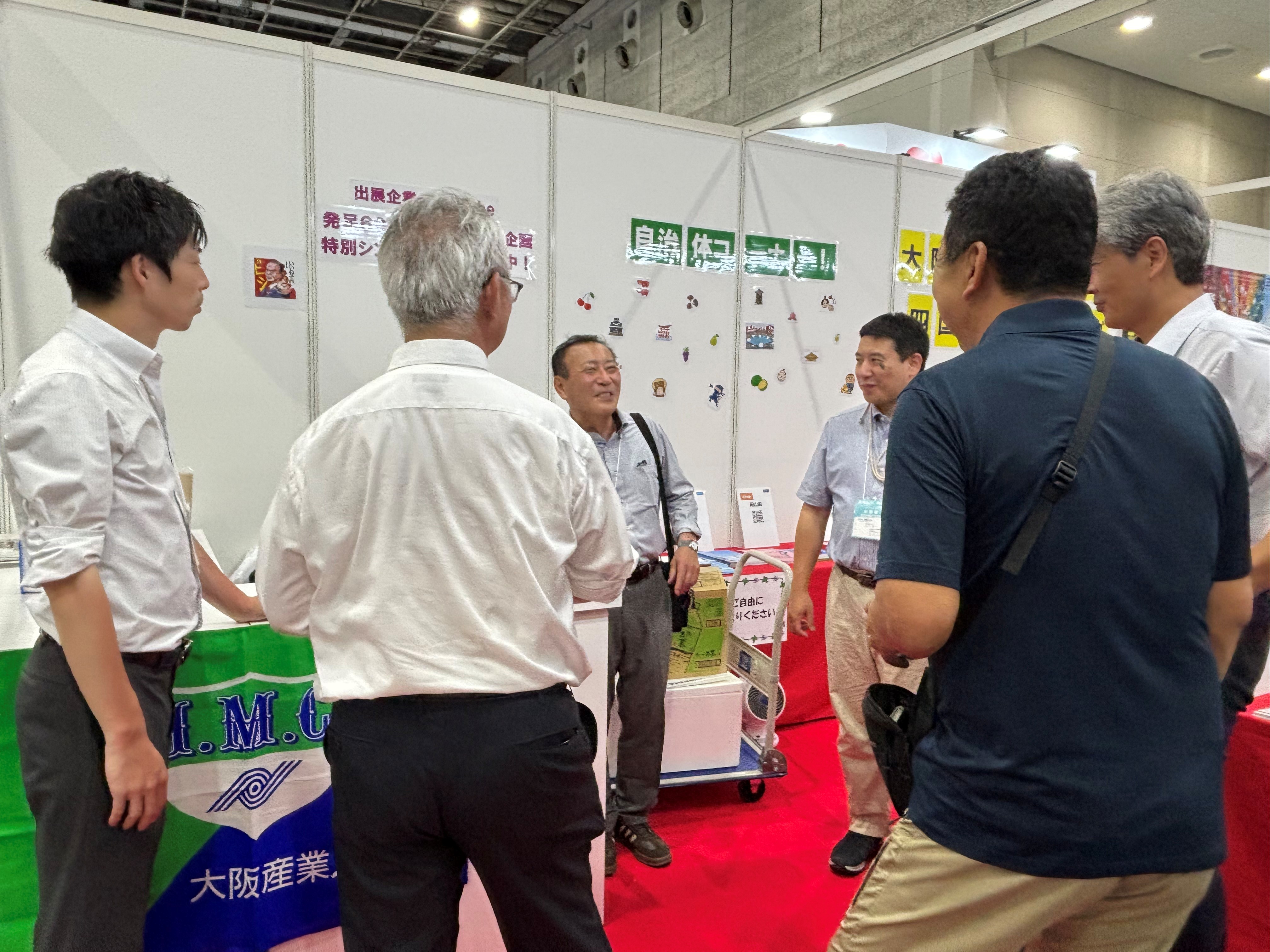 大阪、滋賀、中国四国、四国の4産業人クラブは7月16日から4日間、インテックス大阪(大阪市住之江区)で開催された産業展「未来モノづくり国際EXPO2025」に合同出展した。出展者数は27社・団体。2024年は大阪と滋賀の産業人クラブによる2小間出展だったが、今回は中国・四国地方の産業人クラブにも呼びかけ、3小間で出展した。「会社案内」や「製品カタログ」「企業立地マップ」などの展示に加え、各企業のユーチューブ動画放映やノベルティグッズの配布で集客を図った。さらに同じ展示者で首都圏産業活性化協会(東京都八王子市)に所属する会員企業などとアルコール類を飲みながら情報交換する“ハッピーアワー”も行い、他機関との交流を深めた。