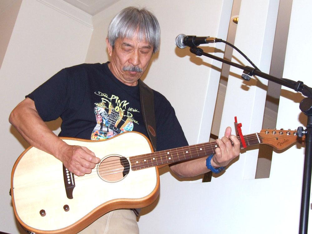 同部会の宴席は毎回趣向を凝らし、今回は大阪産業人クラブ理事を務める野田テック(大阪府吹田市)の野田雄之社長によるギター弾き語りコンサート(写真)で盛り上がった。野田社長は岡山のライブハウスで演奏活動を行う。当日は1970年代から80年代の洋楽邦楽を中心に、「歌で平和を感じてほしい」と野田ワールド全開のパフォーマンスを披露した。参加者らは「会員の新しい一面を発見する機会」に驚くとともに、懐かしい楽曲に思いをはせ、「仕事と趣味の二刀流」を感じるひと時となった。