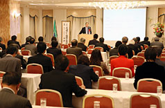 講演の後は、第27回中小企業優秀経営者顕彰受賞者を交えた賀詞交歓会が開かれた。厳しい環境をものともせず新たな市場に挑む受賞者たちの言葉を、約160人の参加者は興味深く聞き入っていた。